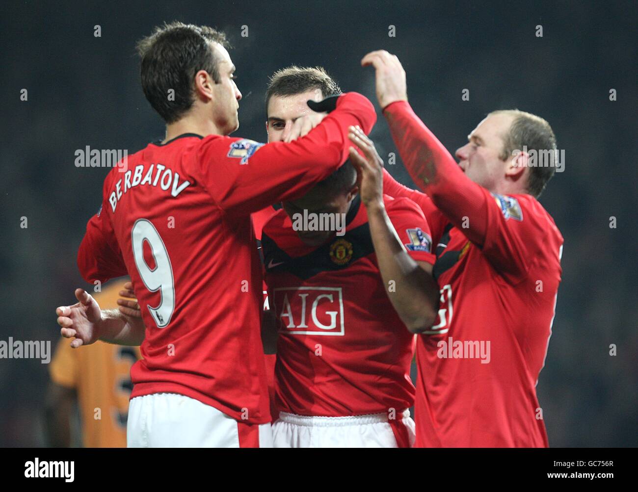 Fussball Barclays Premier League Manchester United Gegen Wolverhampton Wanderers Old Trafford Antonio Valencia Mitte Von Manchester United Feiert Den Dritten Treffer Mit Seinen Teamkollegen Stockfotografie Alamy